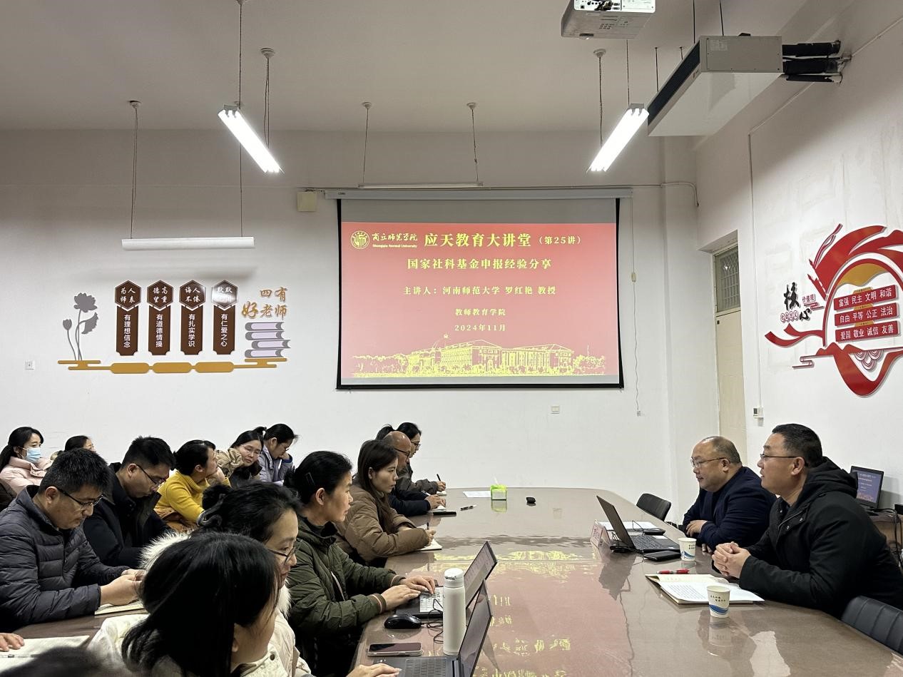 会上,罗红艳围绕国家社科基金的申报流程、评审标准以及申报材料的撰写技巧等方面进行了详细介绍。他结合自己成功申报国家社科基金的宝贵经验,深入剖析了申报过程中的关键点和难点,为大家提供了实用的申报策略和思路。罗红艳强调,申报国家社科基金需要充分准备、精心策划,申报材料要突出创新性、可行性和实用性,确保研究目标清晰明确、研究方法科学合理。同时,他还就如何提升申报成功率给出了一系列具体建议,如加强学术交流、拓展研究视野、注重团队协作等。