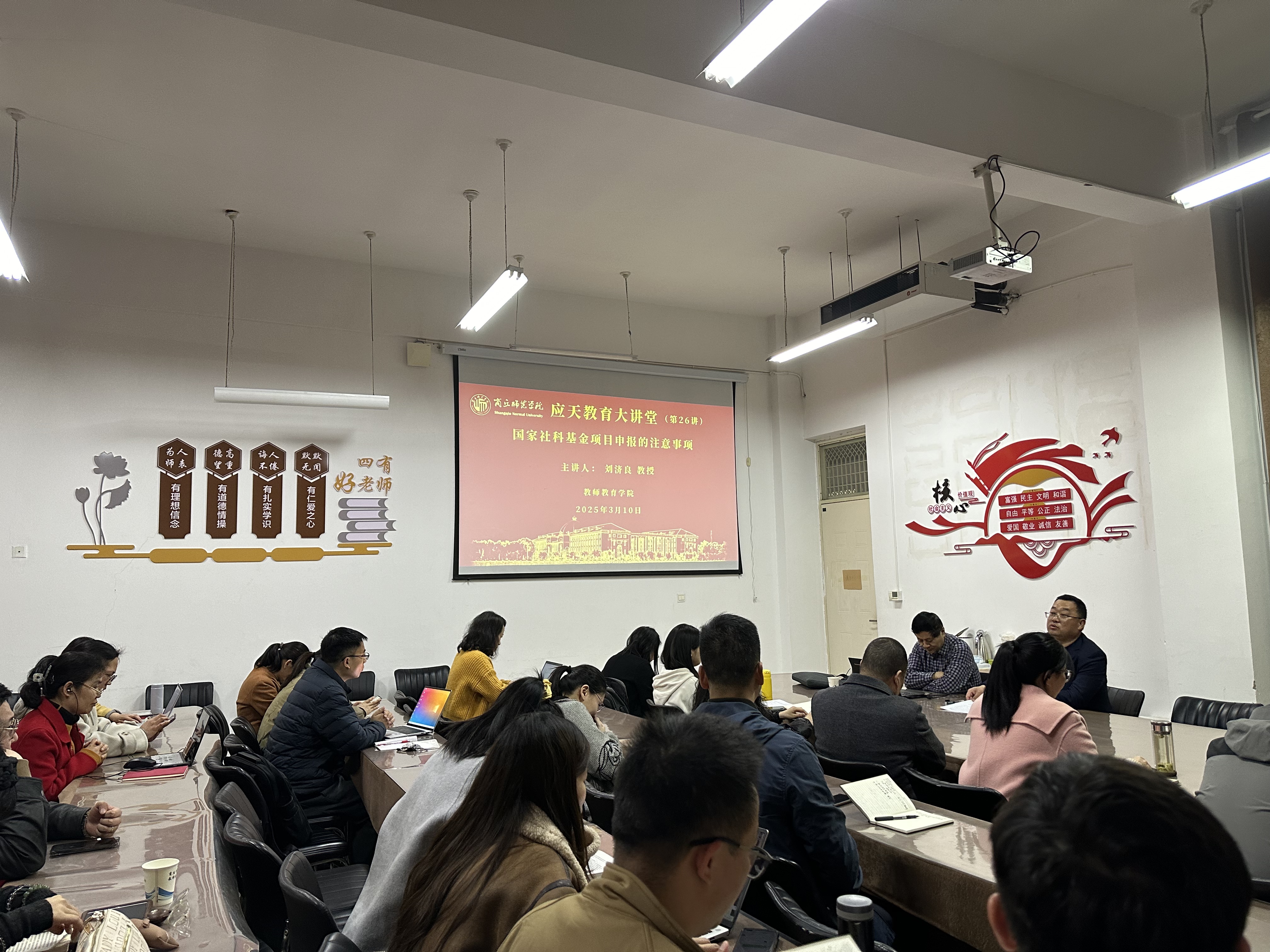 讲座中,刘济良教授结合自身多年科研经验,系统解析了国家社科基金项目的申报流程与注意事项。他强调,选题应立足学科前沿,兼具理论创新性与现实应用价值,既要回应国家重大战略需求,又要体现鲜明的问题导向。在论证设计环节,他通过典型案例对比,指出申报书需逻辑严密、框架清晰,文献综述应体现学术动态的深度把握,研究内容需突出原创性与可行性;方法需与研究问题深度适配,如质性研究应避免样本选择的随意性,量化研究则需注重数据源的权威性。此外,他还特别强调技术路线图切忌形式化,需清晰体现研究步骤的内在关联,行文表述要规范,避免学术硬伤。互动环节,刘教授对于教师申报课题过程中遇到的问题逐一给予针对性解答。