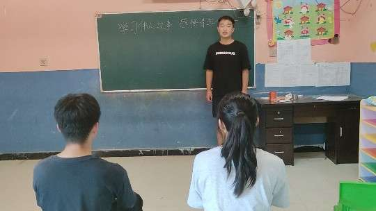 2020级学生党员郭康杰在柘城县伯岗镇一所农村中学旧教室对村里的七、八年级学生进行了宣讲活动。他详细讲解了国家关于疫情防控的一系列举措,引导学生们感受党和政府坚持人民至上和生命至上的防控理念,鼓励他们树立远大的理想信念和正确的学习观,为祖国强大贡献自己的一份力量。