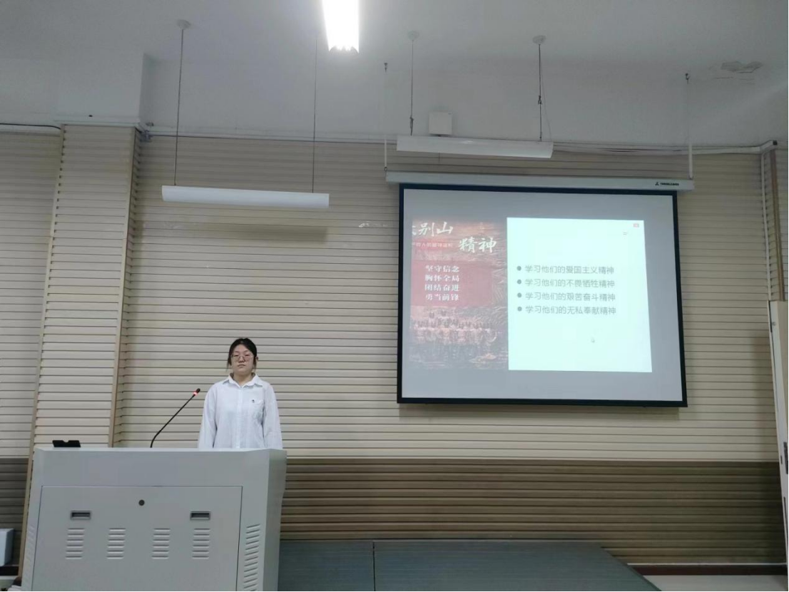 活动共有三个环节。首先,宣讲人通过互动游戏的形式引出宣讲主题——红旗渠精神、大别山精神,活动现场气氛热烈;第二环节,宣讲人带领同学们观看视频——刘邓大军挺进大别山,讲解军民胸怀全局、勇挑重担、不怕牺牲的大别山精神;第三环节,宣讲人结合具体事例,深入分析了红旗渠精神和大别山精神的内涵与时代意义,以引导青年学生学习伟大精神,传承红色基因,赓续红色血脉。