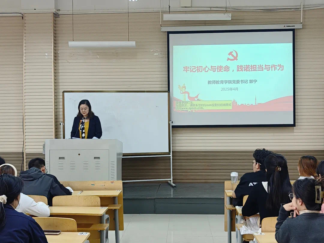 4月7日,院党委书记郭宁以《牢记初心与使命 践诺担当与作为》为题开讲,结合实例阐述党员使命,激励学生在学习生活中勇担责任,以担当诠释初心,用行动践行使命。