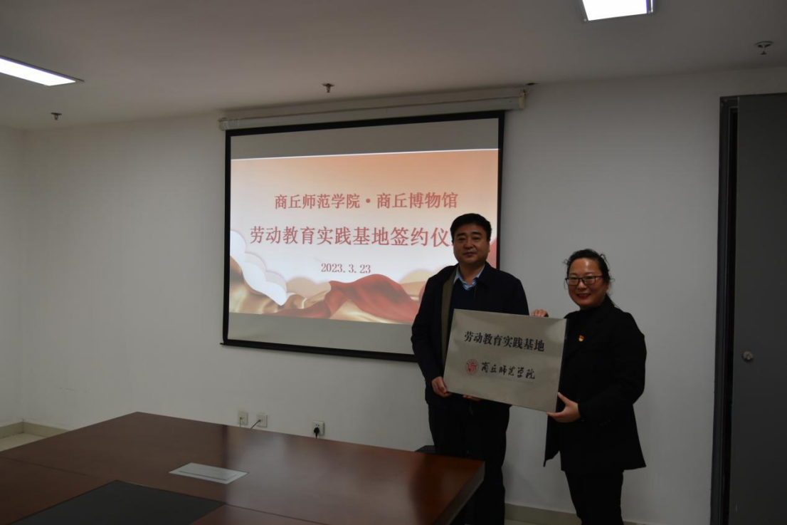肖勇代表商丘博物馆致辞,介绍了商丘博物馆的发展历程。蒯秀丽介绍了学院的基本情况并指出了本次馆校合作的意义。此次活动促进双方达成共识并签署《劳动教育实践基地合作协议》,举行实践基地授牌仪式。
