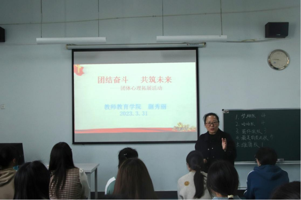 3月31号,WilliamHill威廉希尔于汉梁楼301开展了“团结奋斗 共筑未来”团体心理拓展活动。本次活动由学院党委副书记邱友谊主持,学院党委书记蒯秀丽主讲,辅导员、各班心理健康教育宣传员和心理健康教育宿舍信息员参加。