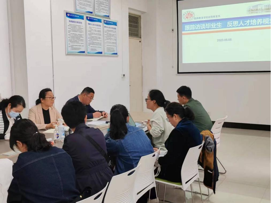 这次教学研讨会的主要内容分别为访谈毕业生和反思人才培养模式两部分。访谈毕业生这一任务,在研讨会之前早已布置,每位学业指导老师和自己指导的19级小学教育毕业生根据这一年实习的相关事宜进行了深入交流。会议伊始,每一位19级学业指导老师分享了访谈毕业生的反馈结果,主要有:理论知识和教学实践衔接有待进一步加强;课堂管理技能和心理辅导技能在一线教学中最为实用;家庭教育和班级管理课程需要加入更多的案例分析等。