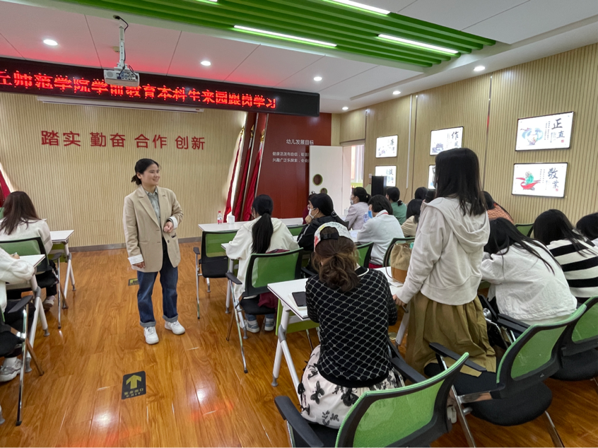 出发之前,全体学生首先接受了相关实习培训,了解了一些注意事项。4月26日,到了郑州市郑东新区普惠路第二幼儿园进行实习。首先,吴慧玲园长全面介绍了本园的情况,接着同学们分成两组对幼儿园小、中、大班的环境、区角活动进行参观,最后,同学们就参观的收获与疑问,发表了自己的看法。所在园的老师进行了详细的解答。4月27日,我们进入到郑州市郑东新区实验幼儿园,深入参与了本园的区角活动。接着,同学之间也展开了交流,许多同学都表示本次实习对教师这一职业有了全新的认识,这是一次宝贵的经历,期间虽然有时辛苦,同时也收获了无数的喜悦。