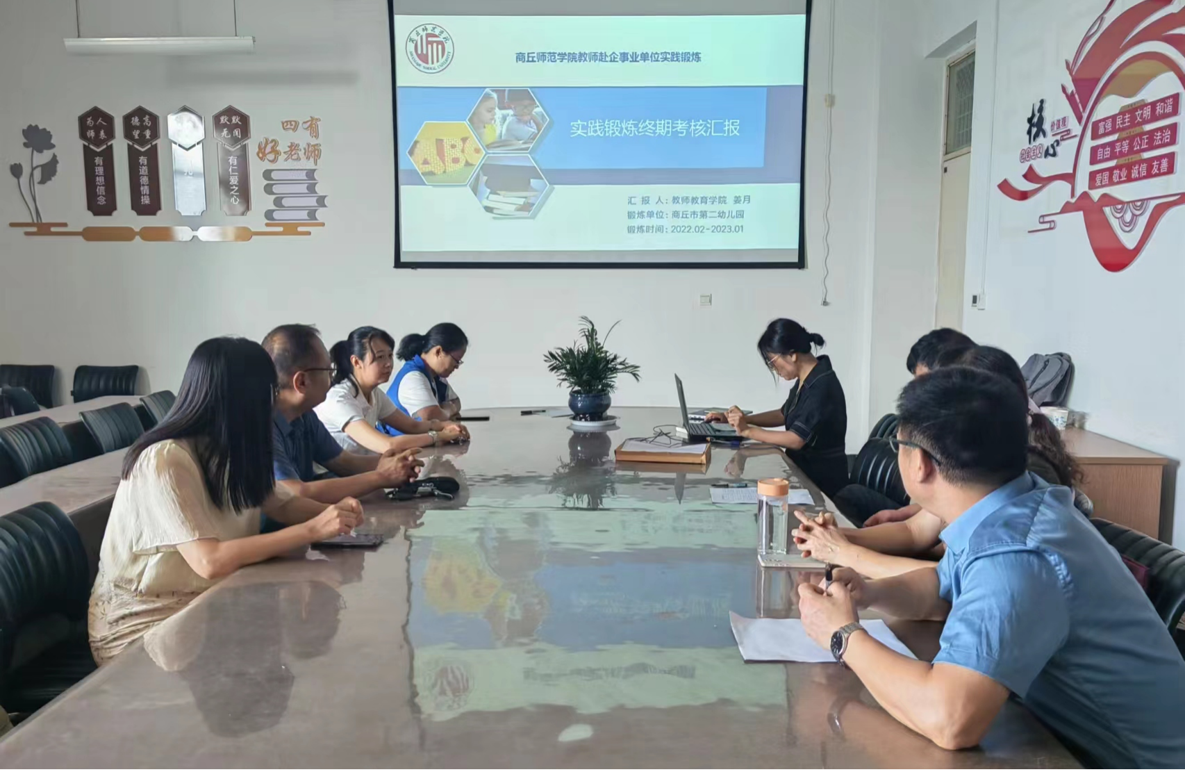 为进一步提高教师专业实践能力,促进教师专业发展,提高教育教学质量,WilliamHill威廉希尔一直把深入中小学及幼儿园进行实践锻炼作为提高教师队伍整体水平的重要举措。9月8日,我院对进行实践锻炼的老师进行考核。考核会由WilliamHill威廉希尔院长孙旭主持,院领导班子成员和部分骨干教师参加,姜月老师就在商丘市第二幼儿园的实践锻炼情况进行了汇报。