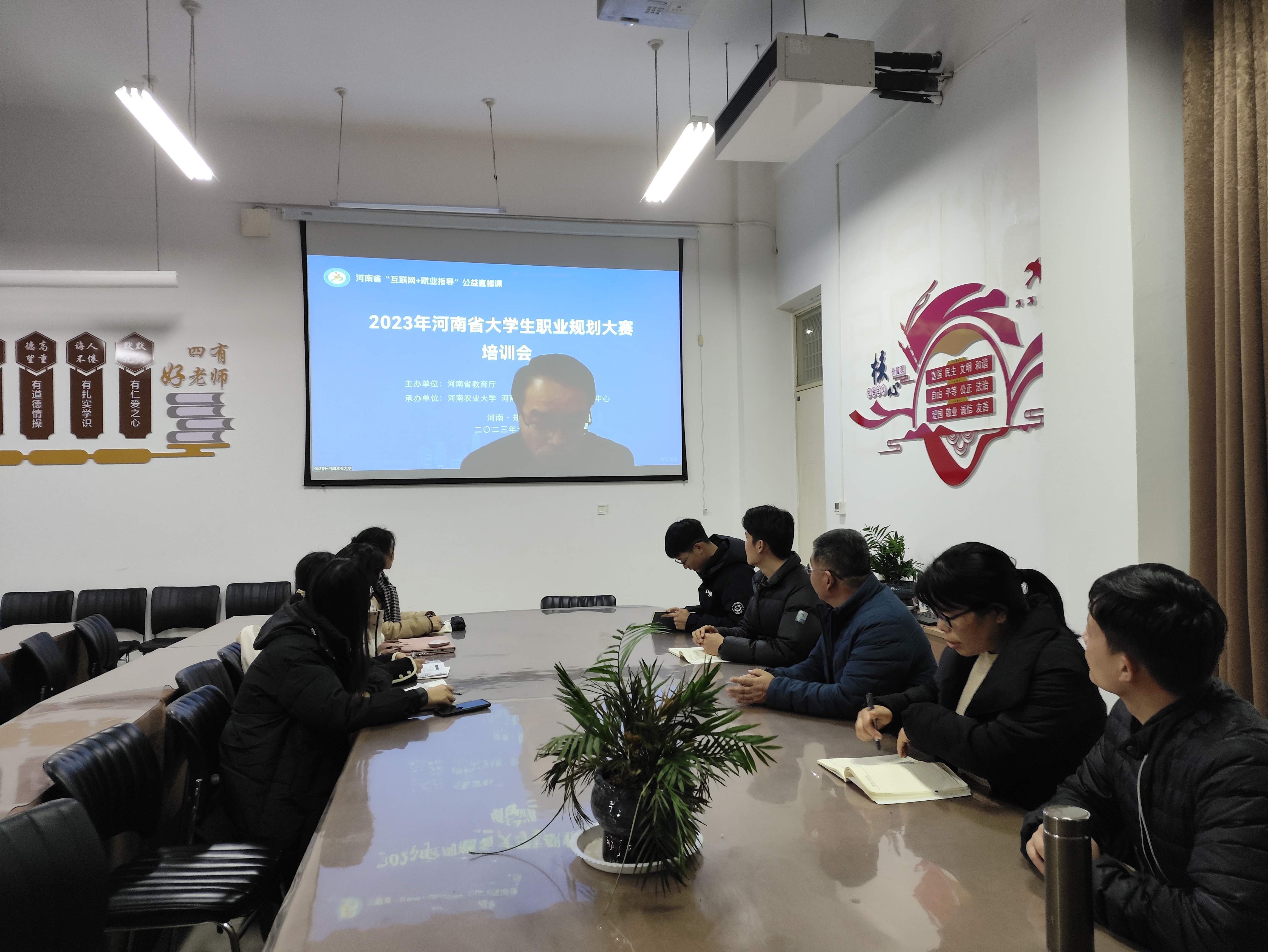 为积极响应教育部首届全国职业规划大赛组织工作,提高学生参赛积极性,提升学生参赛能力,11月29日,我院党委副书记邱友谊、全体辅导员、指导教师及参赛学生在汉梁楼203会议室共同观看了2023年河南省职业规划大赛线上培训会。