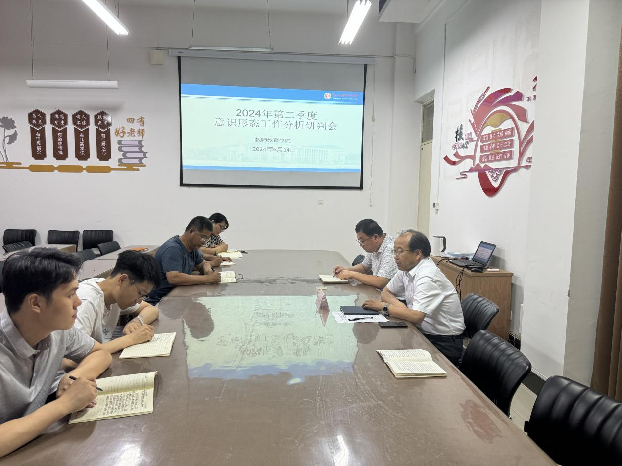 6月14日,WilliamHill威廉希尔在会议室203召开2024年第二季度意识形态工作分析研判会议,副校长郭文佳莅临指导,学院领导班子、辅导员参加会议,院党委副书记、院长孙旭主持会议。