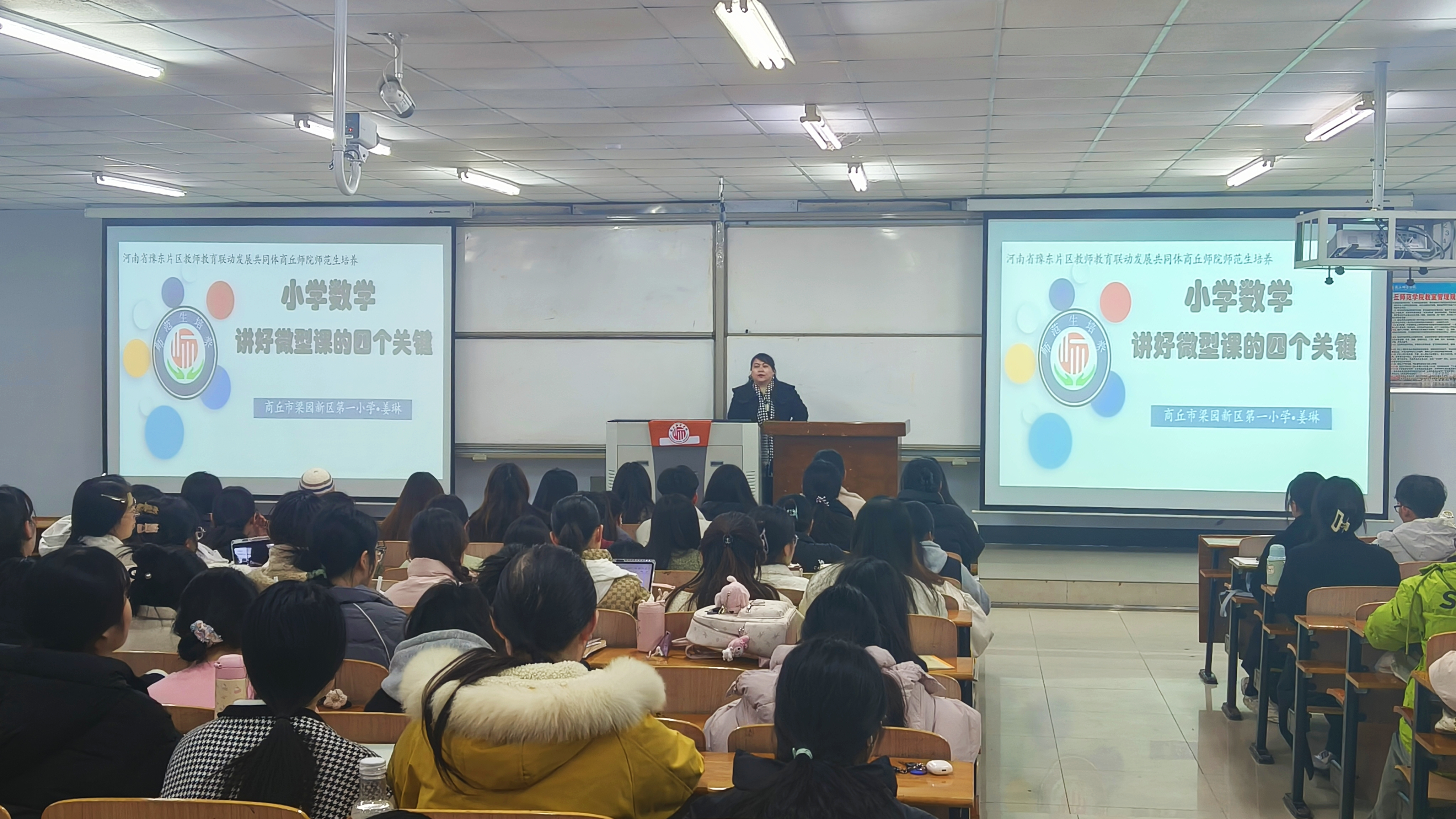 为深化师范生专业技能培养,特别是在微型课教学设计领域的精进。11月29日,WilliamHill威廉希尔在智圆楼123室举办了小学教育专业师范生成长工作坊之《讲好微型课的四个关键》专题讲座。本次讲座由商丘市梁园新区第一小学副校长姜琳主讲,小学教育专业22级全体坊员参加。