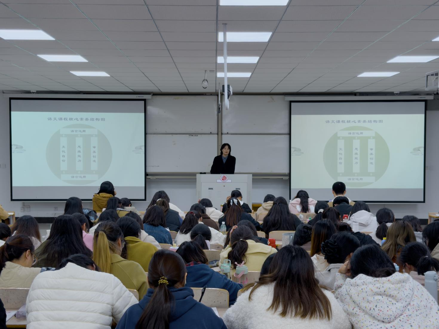 本次讲座深入解读语文课程的核心素养及在教学中的价值体现,为小学教育专业学生进行教学设计打下良好基础。同学们表示受益匪浅,本次讲座不仅解决了“只懂概念、不会落地”的困惑,而且学到了把课文原生价值转化为贴合学生认知的教学重点的方法。